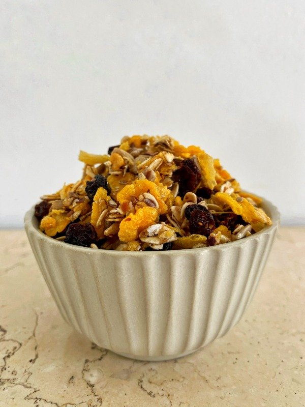 Natural, crocante y llena de energía. Nuestra granola simple combina lo mejor de la naturaleza: copos de maíz, avena, semillas de girasol y lino, junto con pasas de uva morochas que aportan un dulzor natural y delicioso. Una mezcla equilibrada levemente endulzada, ideal para disfrutar en cualquier momento del día. Sin conservantes. Presentación: 500 grs. Conservación: Guardar en lugar fresco y seco.